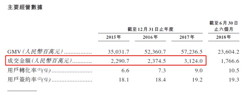 营收规模上,2015年至2017年,公司的营业收入从2.03亿上升到8.81亿,年复合增速208%。在此期间,平台的成交金额从22.91亿上升到了31.24亿。