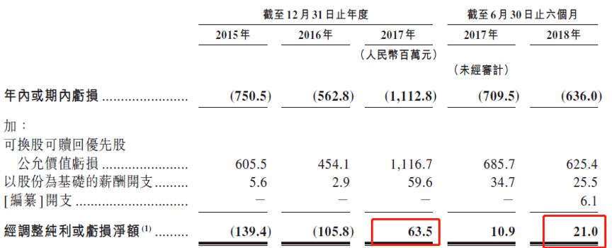 以经调整纯利口径来看,公司直到2017年才实现盈利,为6350万,今年上半年经调整纯利为2100万。