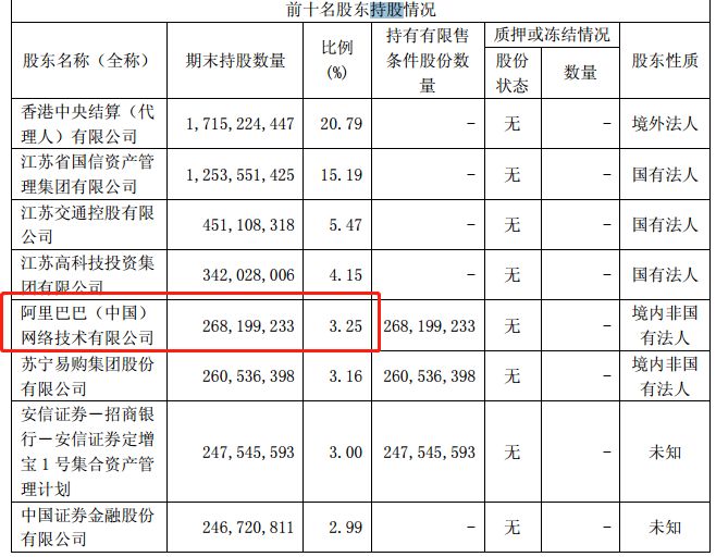 去年八月份,华泰证券完成定向增发,引入阿里巴巴、苏宁易购等战略配售者。据华泰证券三季报,前十名股东持股中,阿里巴巴(中国)网络基数有限公司持股比例3.25%,位列第四大股东;苏宁易购集团持股比例为3.16%,紧随其后位列第五大股东。